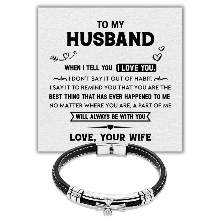 To my Husband A Part of me Will Always Be With You - Premium Stainless Steel Celtic Cross Black Italian Leather Bracelet