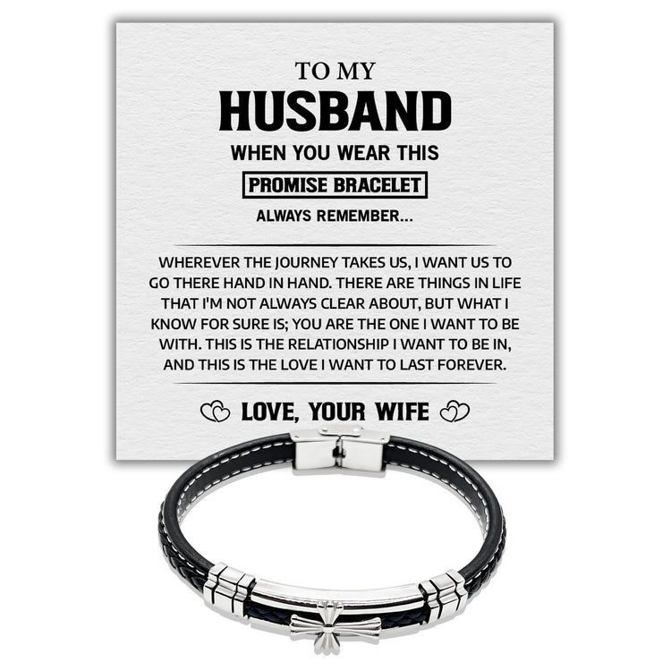 To my Husband This Is The Love I Want To Last Forever - Premium Stainless Steel Celtic Cross Black Italian Leather Bracelet