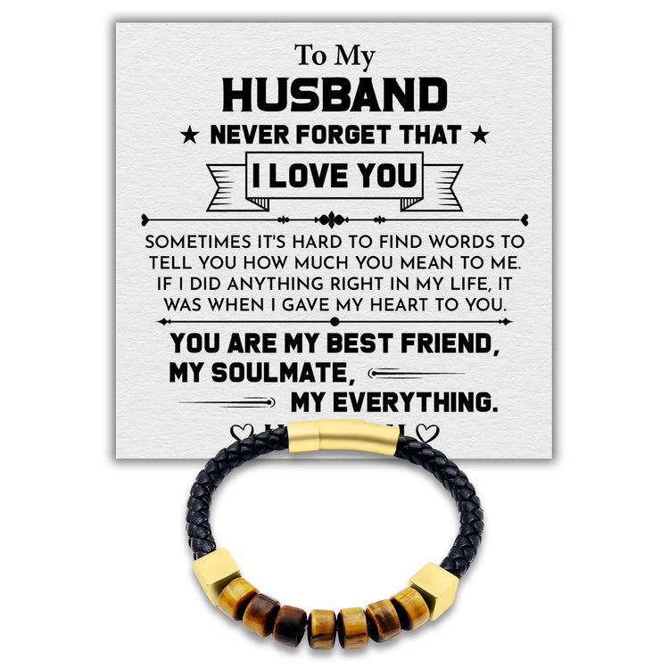 To my Husband You Are My Best friend - Premium Tiger’s Eye Woven Black Italian Leather & Gold Stainless Steel Cubed Bracelet for Men