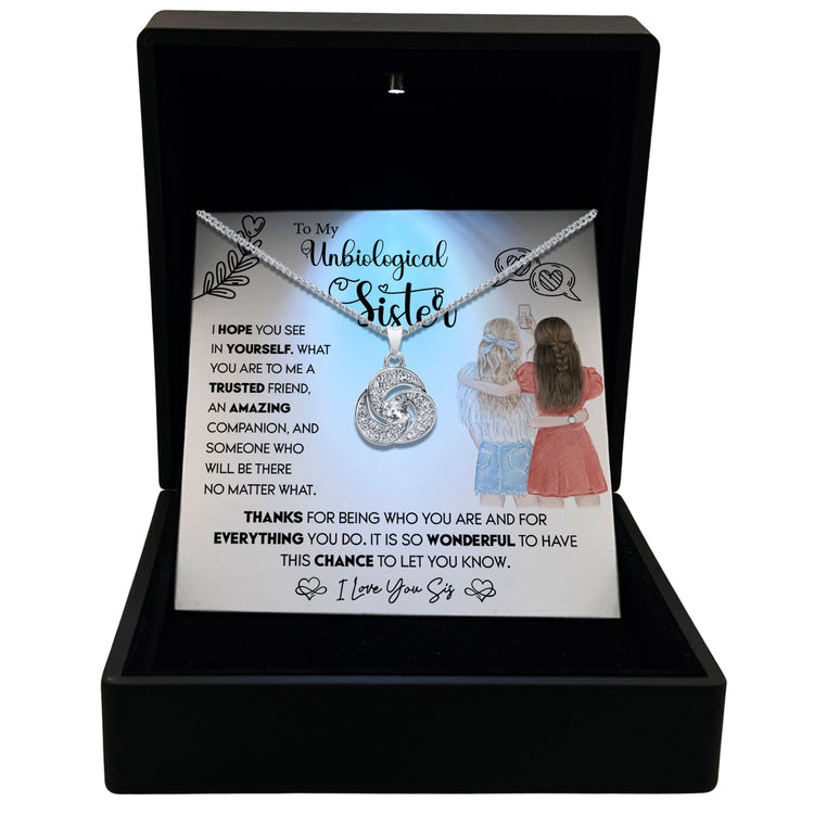 TRYNDI™ To My Unbiological Sister Love Knot Necklace With Authentic Swarovski Crystals